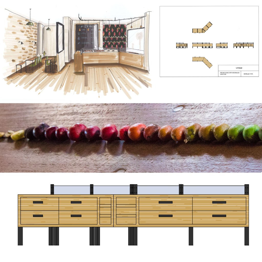 Conception d’un comptoir vitrine sur mesure pour une chocolaterie.